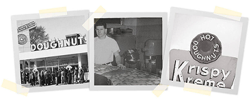 Tudo começou nos anos 1930, com um jovem chamado Vernon Rudolph, o responsável pela origem desses donuts icônicos. Vernon abriu sua primeira loja em Winston-Salem, na Carolina do Norte, vendendo donuts para supermercados. Mas logo percebeu que tinha um "problema": o cheirinho dos donuts quentinhos chamava a atenção de quem passava por perto. A solução? Ele fez um buraco na parede da loja e começou a vender direto para o público.